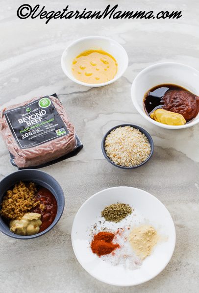 - To make your Beyond Meat meatloaf, start with your protein in a bowl. The process is essentially a dump-and-stir method. The items can be added in any order. However, this is how we add them.