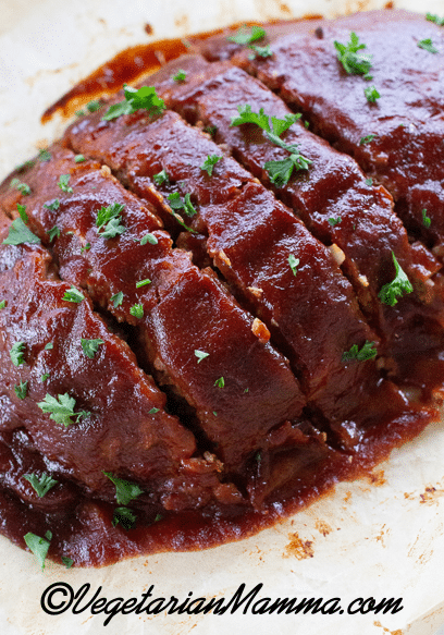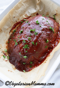 - Put the glazed vegan meatloaf back in the oven for about half an hour. Let it stand for at least 10 minutes to set before slicing with a serrated knife for the perfect loaf slices.