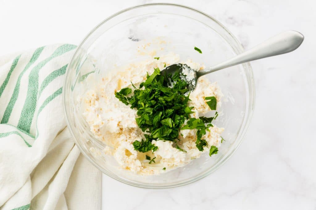 - Mix together ½ of crumbs and cream cheese. Once combined add in the parsley.