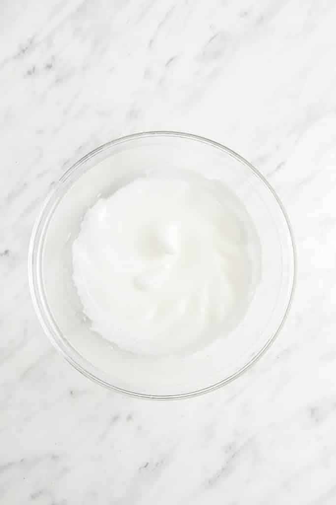 - Use an electric mixer to beat the egg white until stiff peaks form. Set aside.