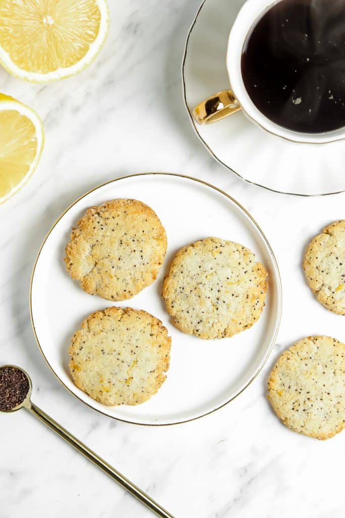 To make these cookies vegan, simply ditch the egg white and swap for 1 tablespoon aquafaba or make a flax egg. Both are great vegan binders that don't mask the bright lemon flavor of these gluten-free cookies.