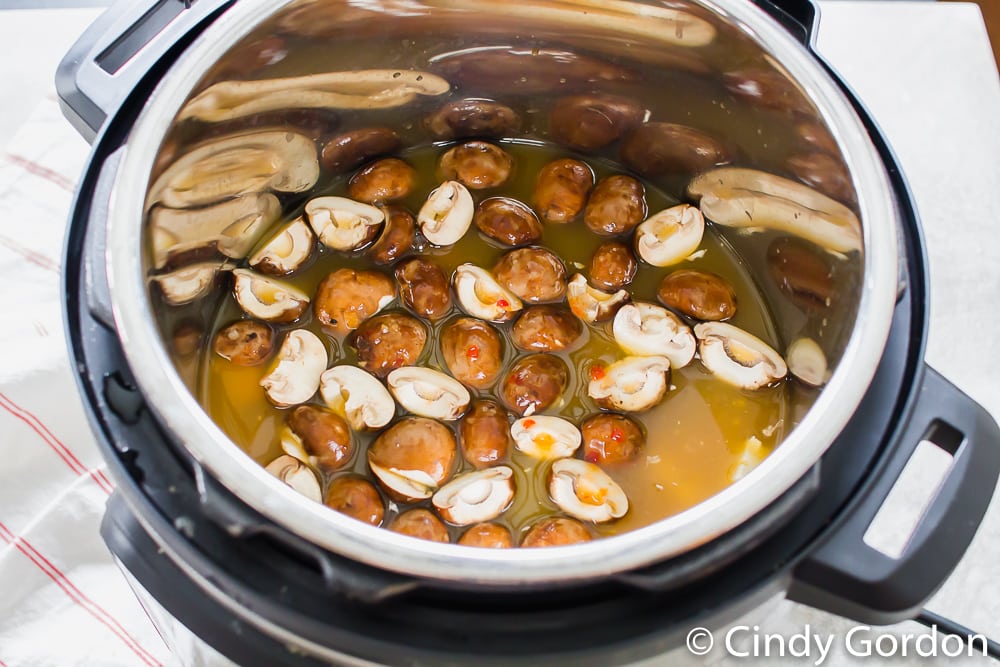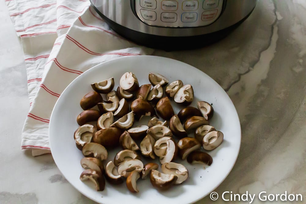 - Gently wash the mushrooms and slice them before adding to the Instant Pot.
