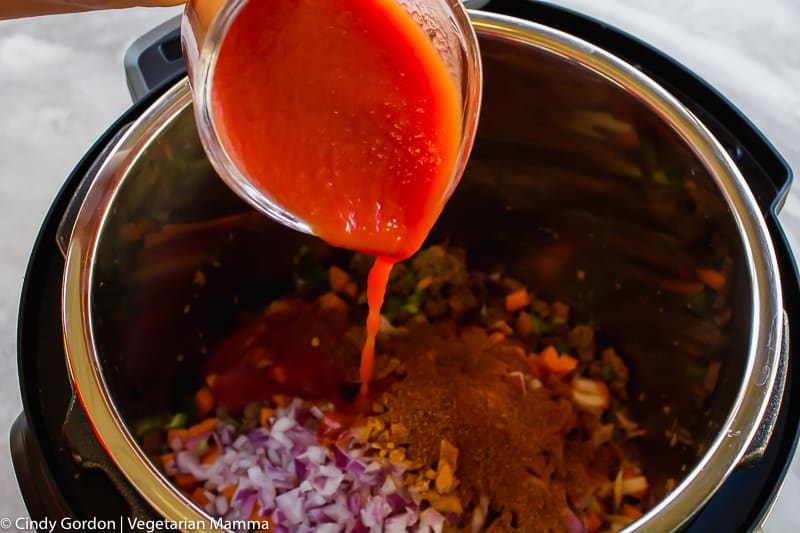 - Put ground protein and oil into Instant Pot. Using sauté function, brown protein. Turn off sauté mode.