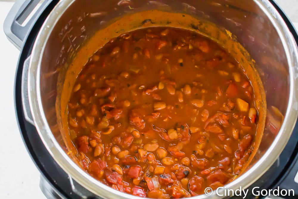 - Once pressure is released, take off the lid. Give the chili a final stir and serve.