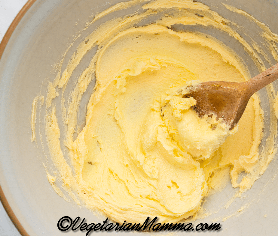 - In a separate large bowl, beat the butter and sugar with a wooden spoon until smooth.