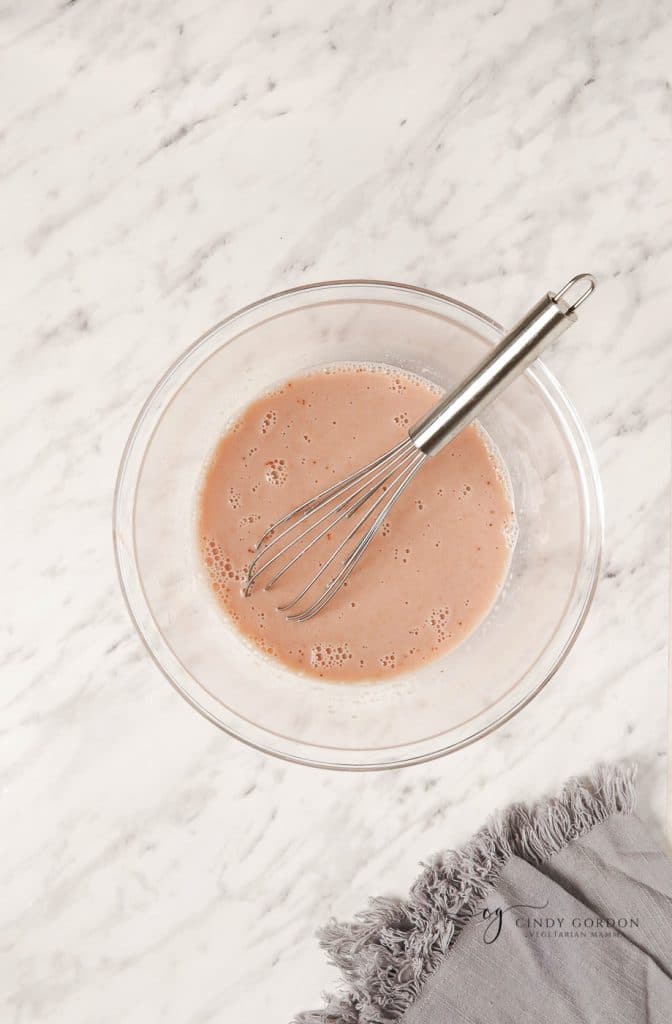 - Add the almond milk and vanilla extract. Whisk until combined.