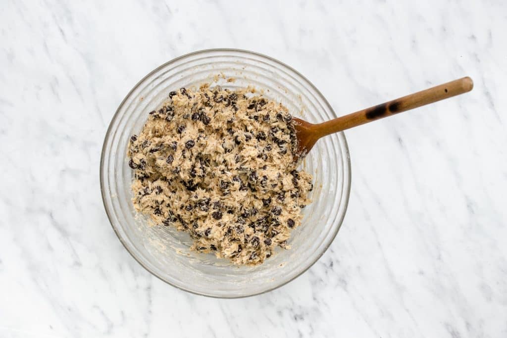- Fold in vegan chocolate chips.