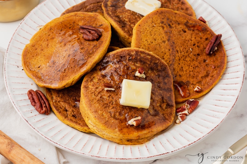 I usually have a savory breakfast packed with veggies and flavor. But, sometimes, I just need that sweet, fluffy comfort of pancakes. These vegan pumpkin pancakes are the best fall brunch recipe you'll ever find!