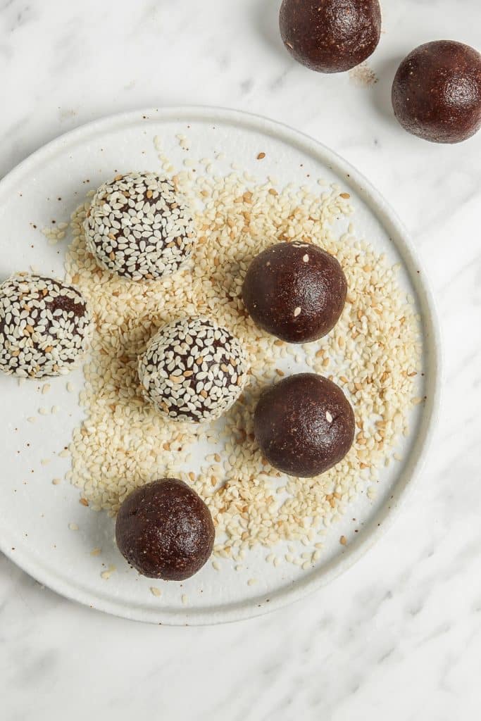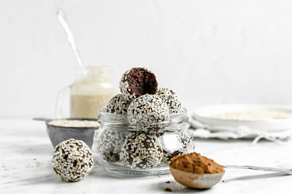 Bliss Balls are so decadent you will forget they are healthy, too! These creamy chocolate tahini balls are covered in sesame seeds for the best vegan snack, no-bake dessert, or even breakfast on-the-go.