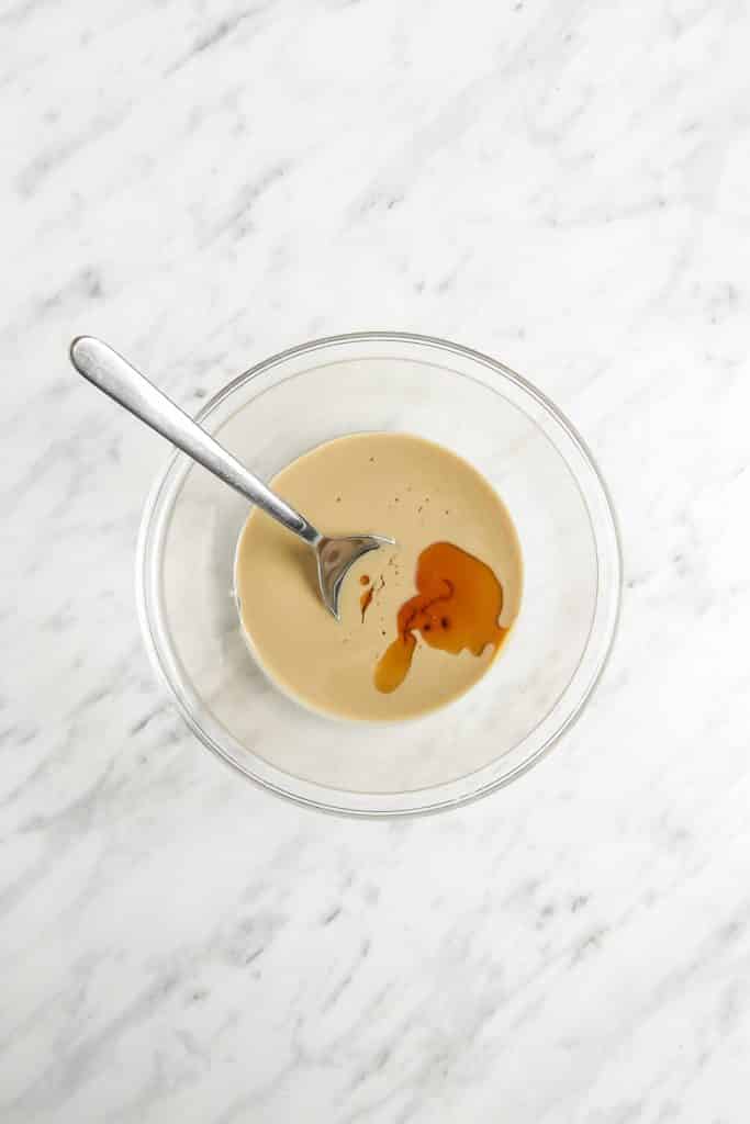 - In a bow, mix the tahini, maple syrup, and vanilla extract until well combined.