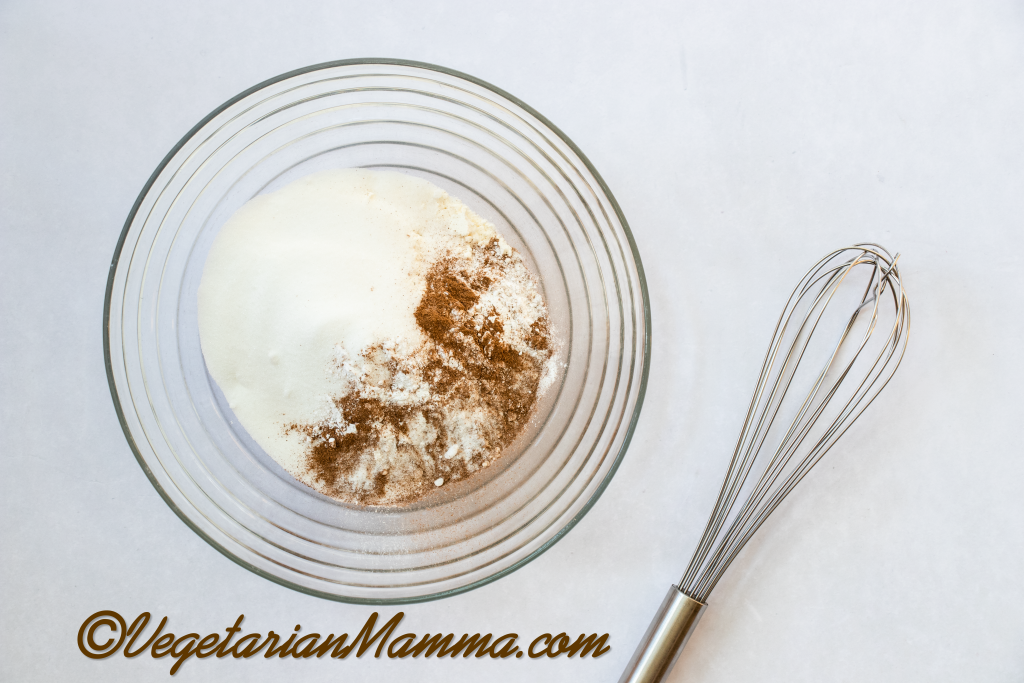 - Then, mix the cinnamon and sugar together in a small bowl.