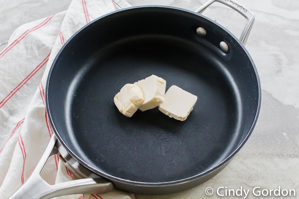 - Once softened, add poultry seasoning, salt, and pepper. Stir to combine.