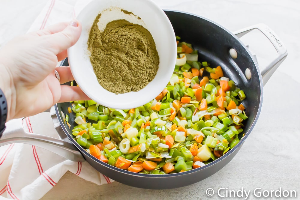 - In a skillet over medium heat, melt butter. Once butter is melted, add the leeks, carrots, and celery. Sauté until soft.
