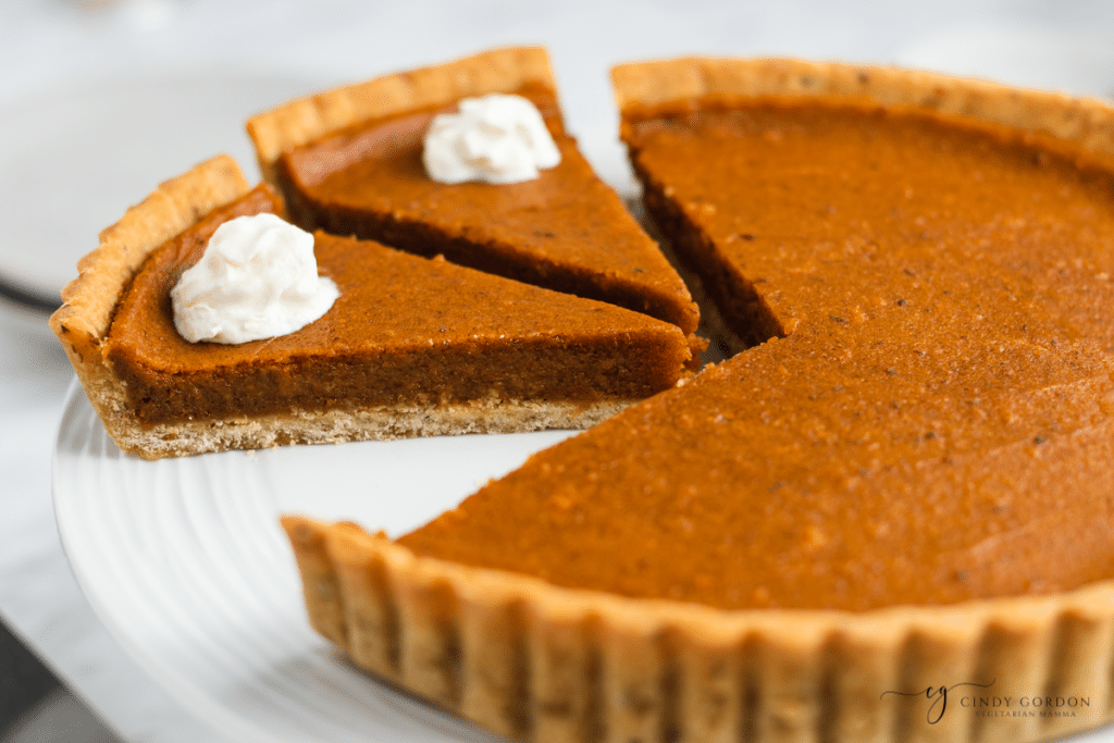 Since you do not have to worry about any dairy-based ingredients going bad, you can keep this sweet potato pie at room temperature on the kitchen counter. This will last up to a week, but we never have leftovers that long!