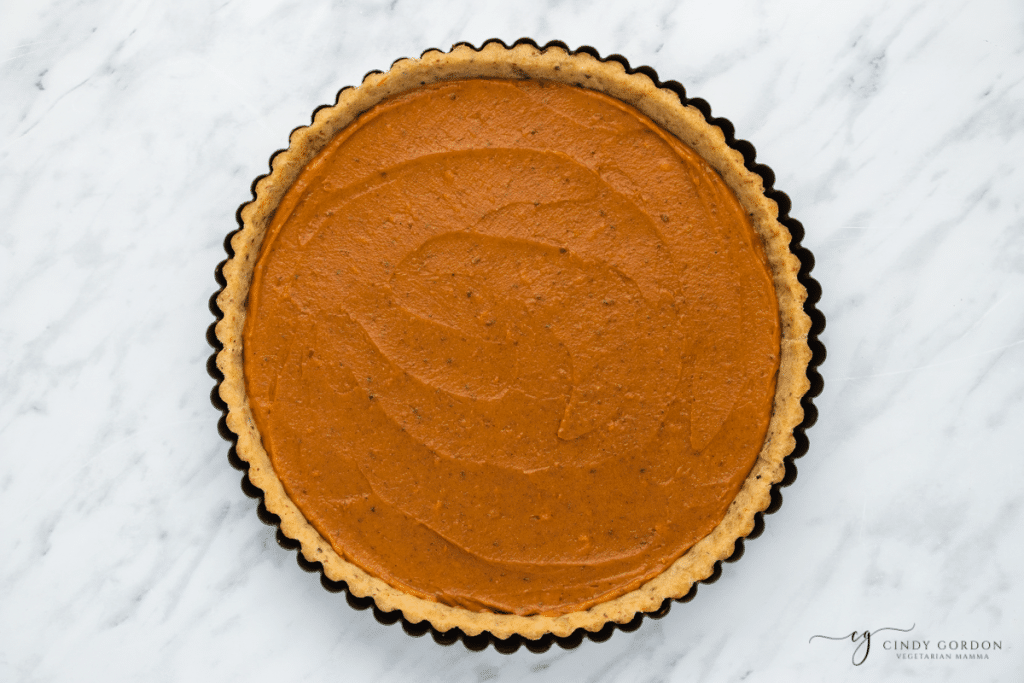 - Spoon the mixture into your prepared pie crust, and smooth it out in an even layer.
